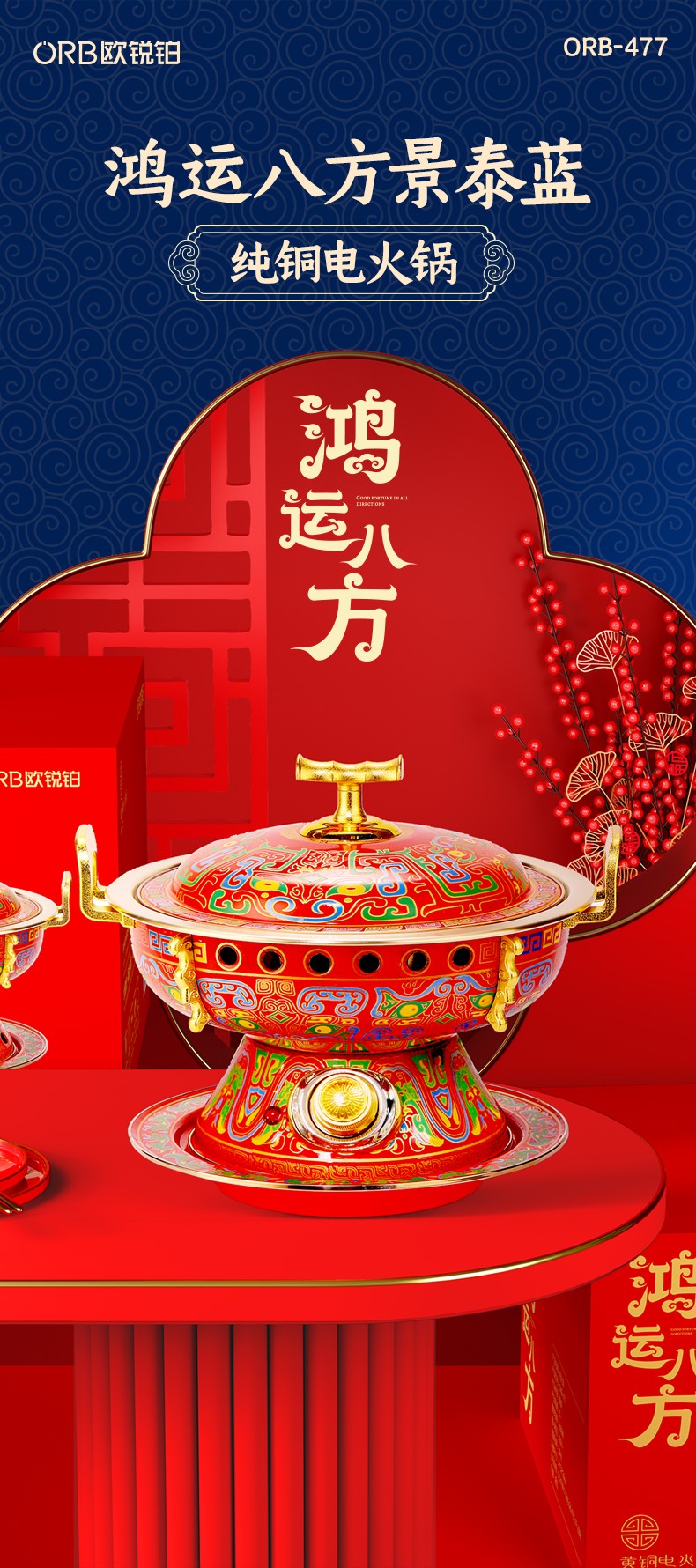 欧锐铂 鸿运八方-黄铜电火锅 ORB-477
