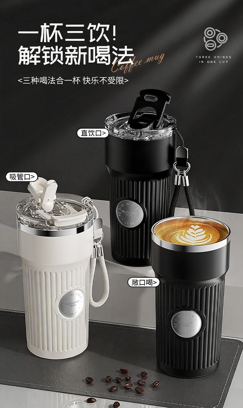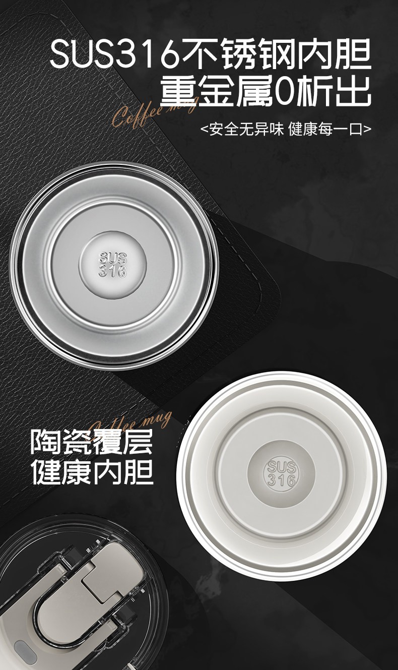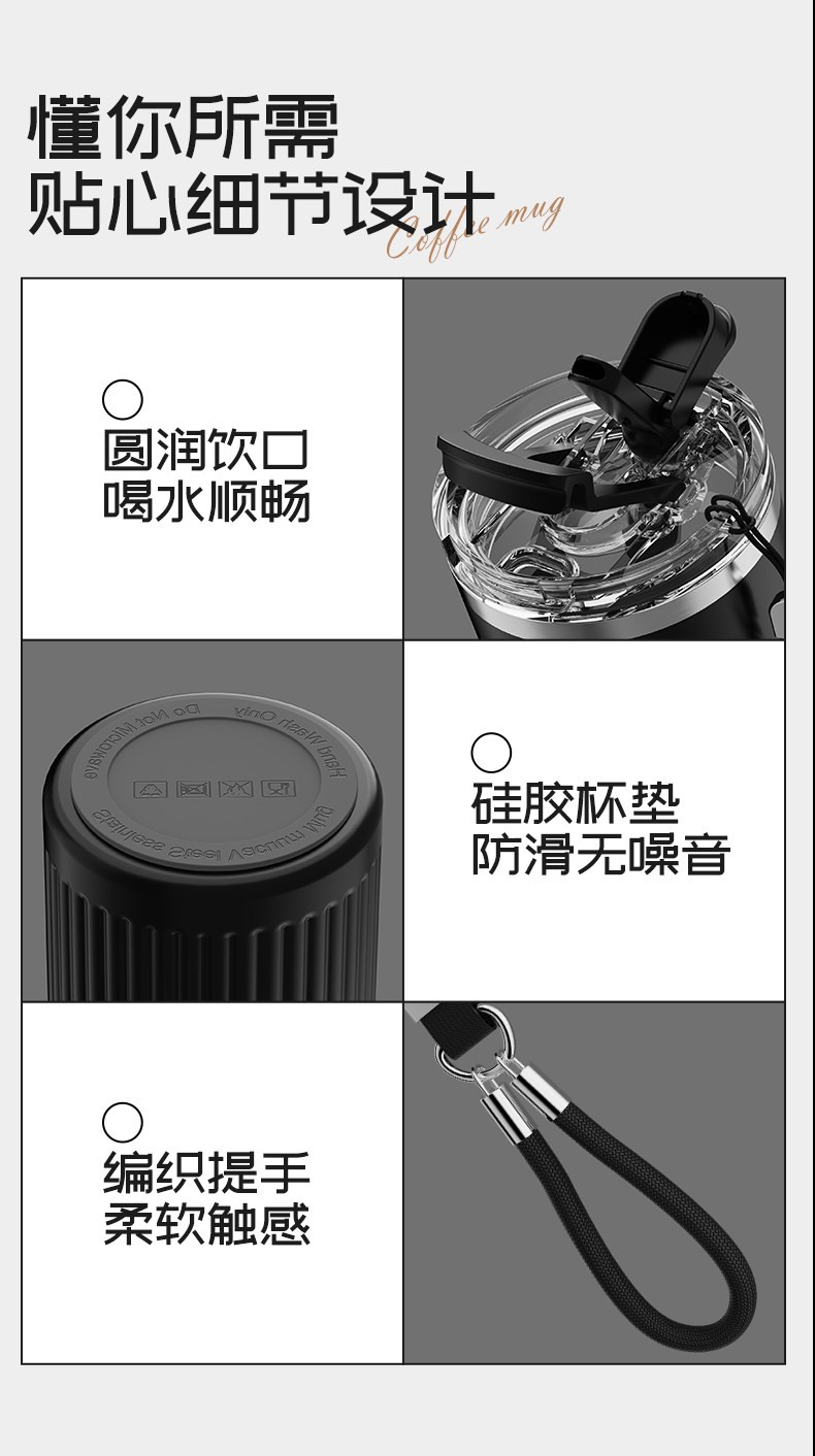 一杯三饮:直饮,吸管,敞口喝,随心切换; 多层保温结构,长效保温锁冷,冷热饮品随意畅饮; 316不锈钢+陶瓷覆层内胆,重金属0析出,安全无异味; 便携提绳,柔软触感不勒手; 全身可拆卸,易于清洗,污垢无处可藏; 坚固耐造,360°倒置不漏水; 居家办公,户外出行,车载随行都适宜; 幻夜黑+云朵白双色可选,立体徽章浮刻,品质呈现; 硅胶杯垫,防滑无噪音。